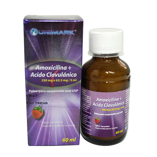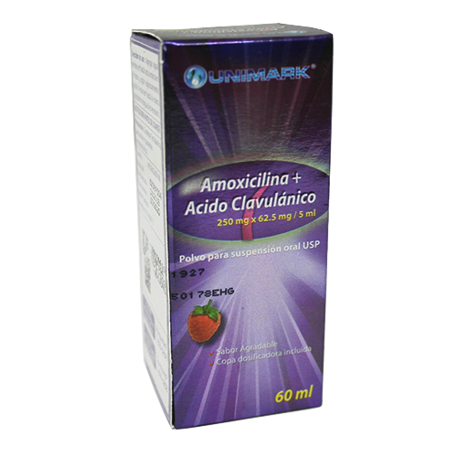 Amoxicilina + Acido Clavulanico 250 mg x 62.5 mg/5ml PPSO 60 ml/Frasco 1/Caja (UNIMARK-India)