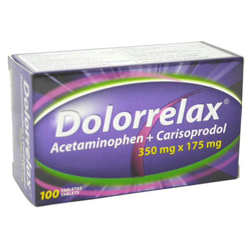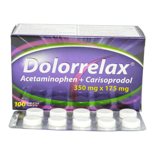DOLORRELAX (Acetaminofen 350mg + Carisoprodol 175mg) Tableta 100/Caja (UNIMARK-India)