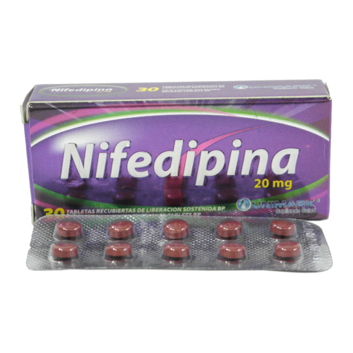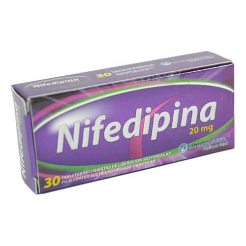 Nifedipina 20 mg Tabletas Recubiertas de Liberacion Sostenida 30/Caja (UNIMARK-India)